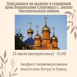 В храме Чистопольского района пройдет акафист