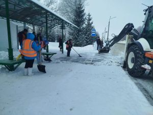 В Чистополе коммунальные службы расчищают остановки от снега
