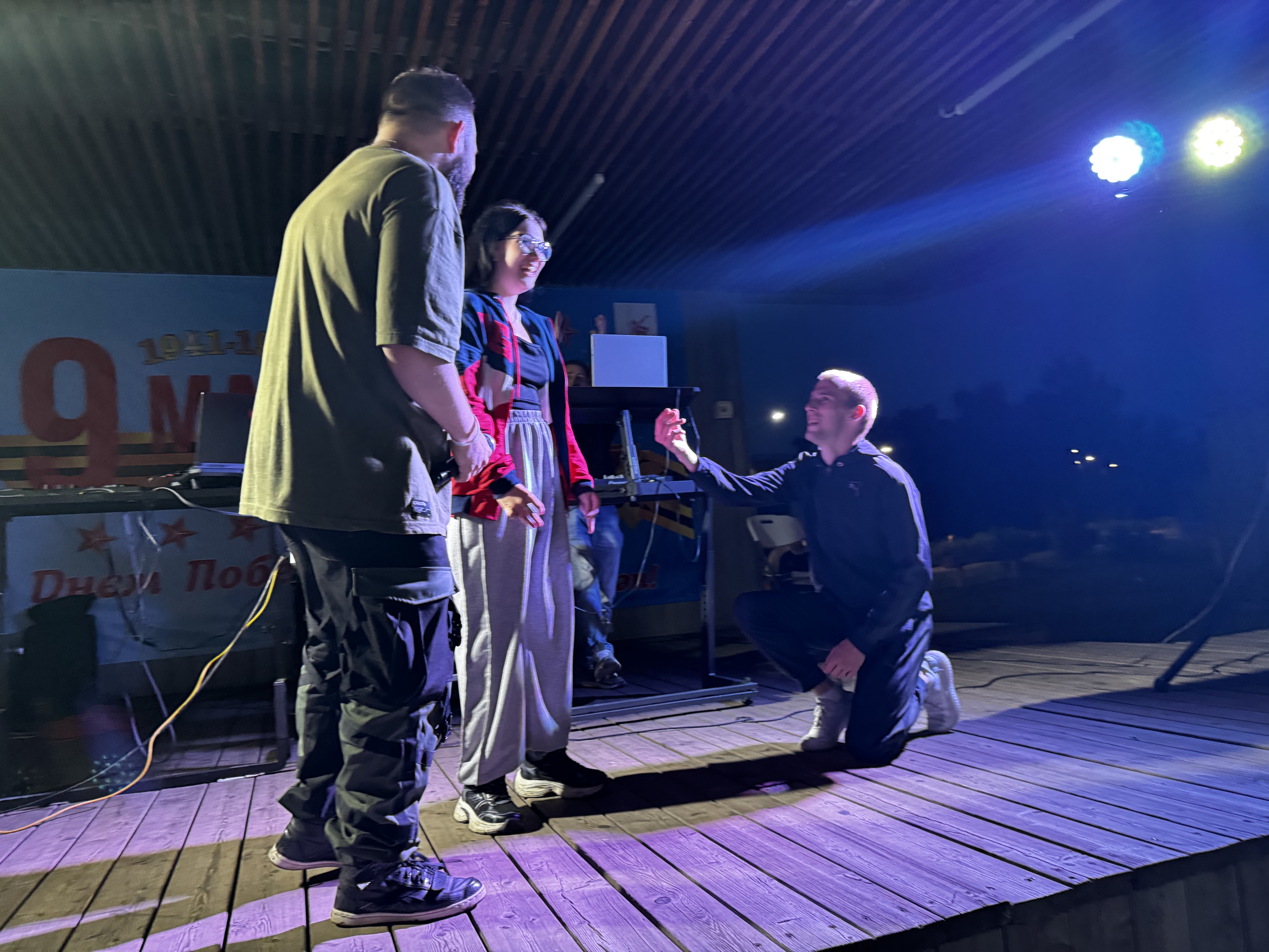 Во время праздника один из участников сделал своей возлюбленной предложение руки и сердца под аплодисменты публики.